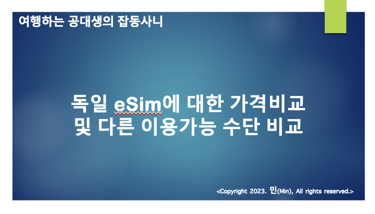 이번 포스팅에서는 독일 eSim에 대한 내용에 대하여 간략하게 알아보고자 합니다.