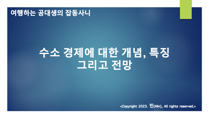 안녕하세요 여러분 민(Min) 입니다. 이번 포스팅에서는 미래 에너지 생태계로 여겨지고 있는 수소 경제에 대한 이야기를 간략하게 나눠보고자 합니다.