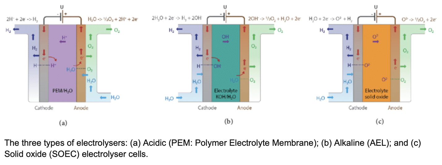 There are three main types of electrolyzers used in the hydrogen economy: alkaline, proton exchange membrane (PEM), and solid oxide.
