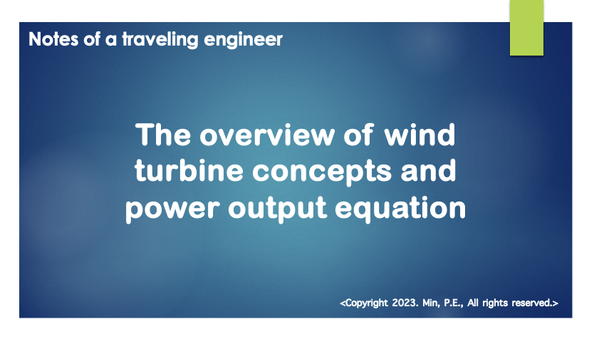 Hi everyone this is Min and I would like to share the "The overview of wind turbine concepts and output equation" from this post. I will introduce 4 types of wind turbines here and I will also mention the output equation for the wind turbine.
