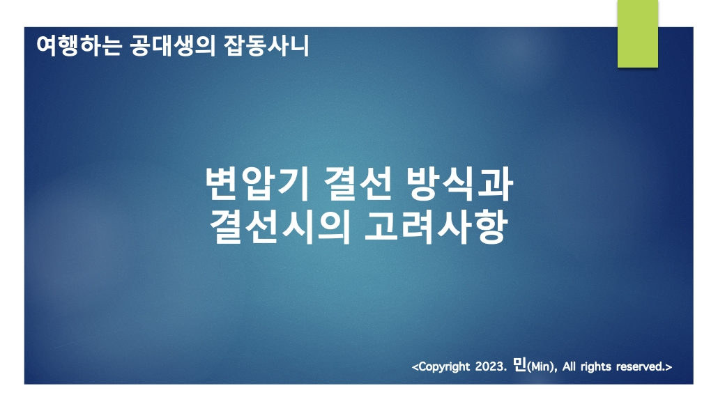 이번 포스팅에서는 변압기 결선 방식과 결선시 고려해야 하는 사항에 대한 이야기를 나눠보고자 합니다.