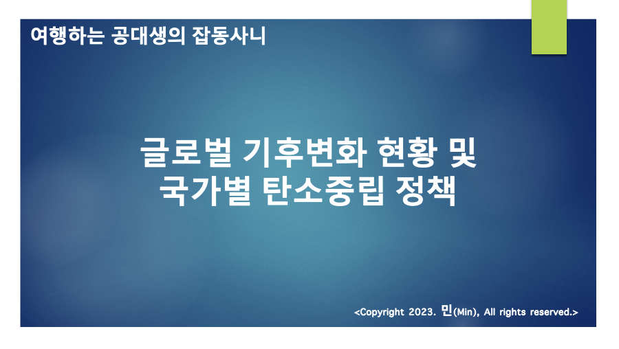 이에 우리 정부도 기후·에너지 위기에 대한 국제적 동향에 맞춰 시의적절하고 종합적인 대응을 위해 사회·경제적 패러다임 전환을 계획·실행하고 있다.