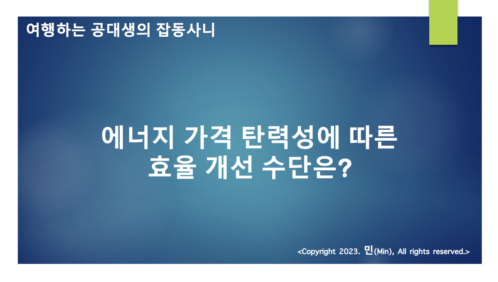 | 에너지 가격이 에너지 소비 또는 효율성에 미치는 영향은? (0) | 2023.06.07 |
