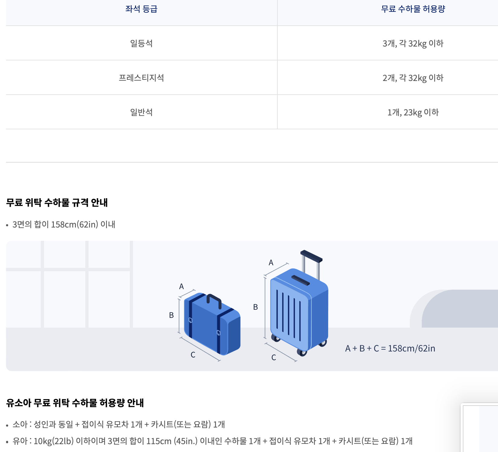대한항공 위탁수하물 허용 사이즈(유럽 운항 기준 예시)는 어떻게 될까요??