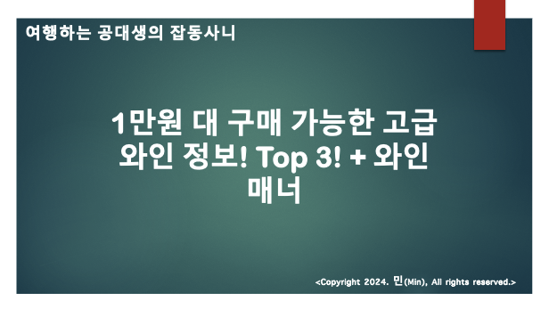 안녕하세요 여러분, 민(Min) 입니다. 이번 포스팅에서는 저렴하지만 고급진 맛을 자랑하는 와인 Top3를 추천해 드리려 합니다.