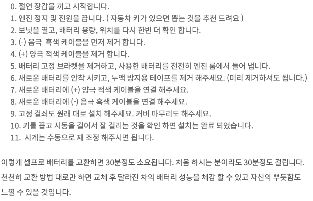 - 제품이 내 차종에 장착할 배터리가 맞다면 작업 시작