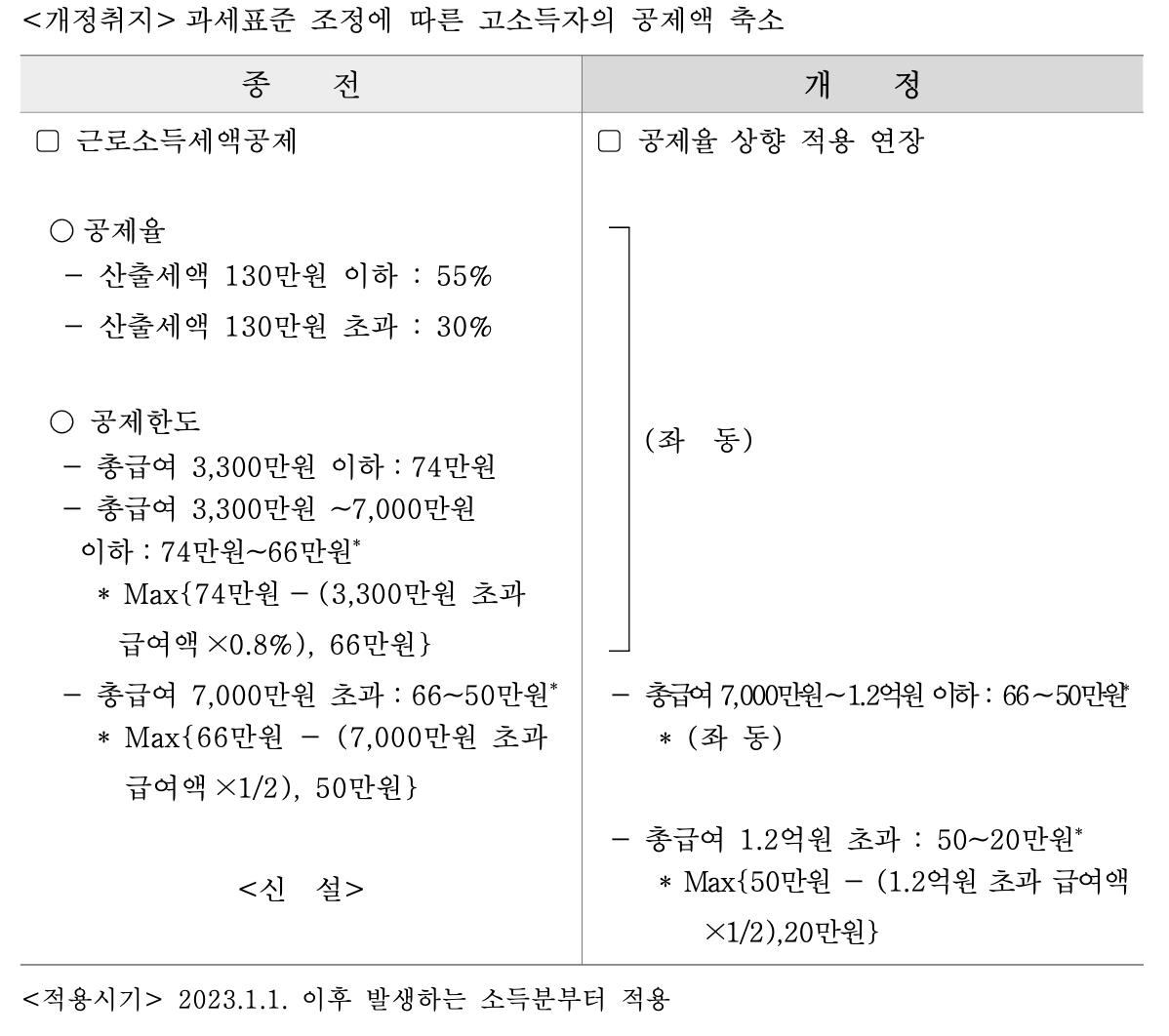 위의 내용이 23년 귀속 연말정산에 해당하는 세법 주요 개정 내용입니다.
