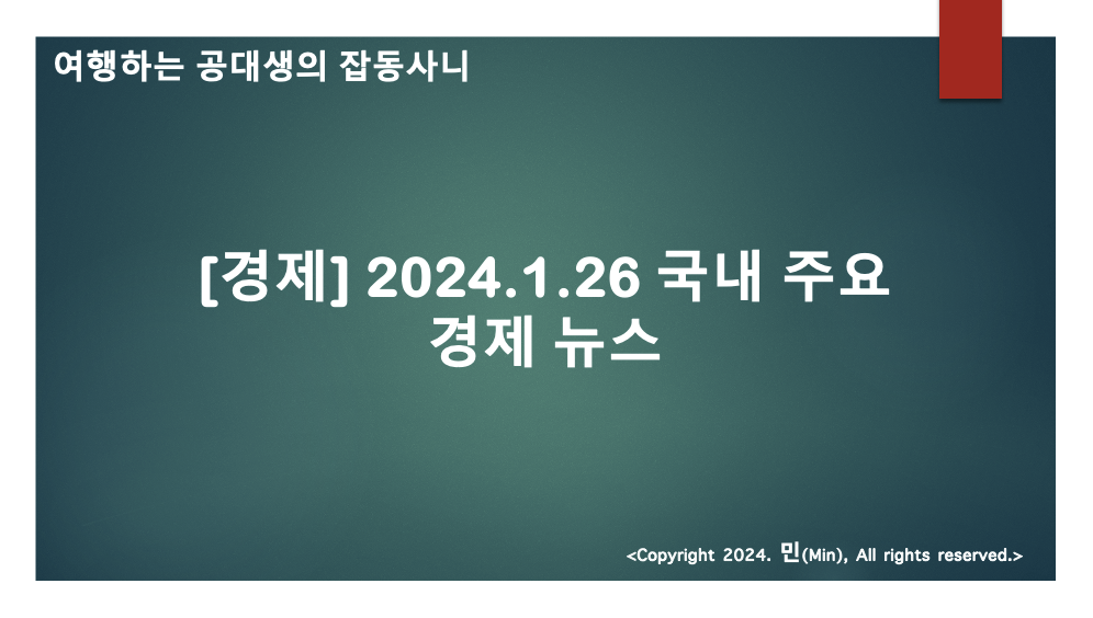 안녕하세요 여러분 민(Min) 입니다. 오늘도 국내 주요 경제 뉴스를 아래와 같이 정리하여 브리핑 해드립니다.