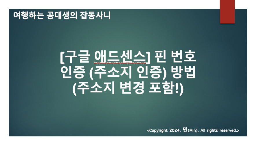 안녕하세요 여러분, 민(Min) 입니다. 이번 포스팅에서는 구글 애드센스 핀 번호 인증에 대한 이야기를 드리고자 합니다.