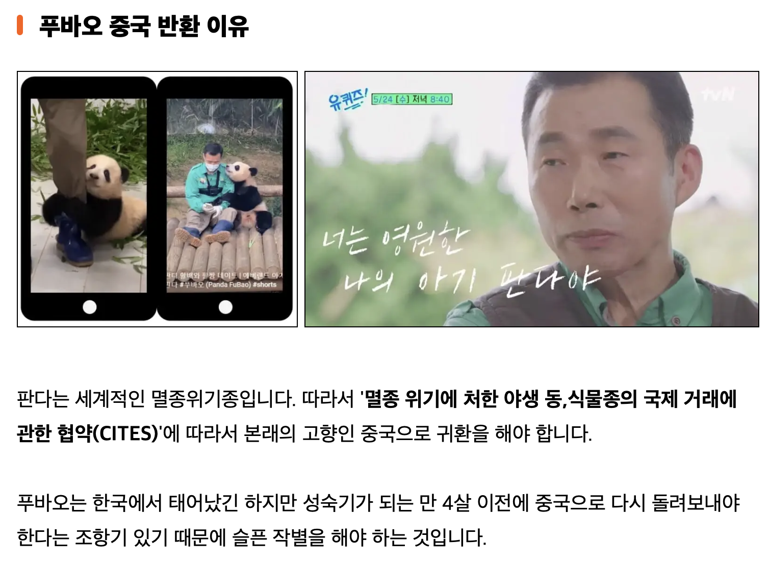 여기서 드는 의문점이 있습니다. 한국에서 태어단 판다를 왜 중국에 반환해야 할까요?