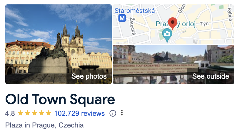 Historic square in Prague, Czech Republic View from the Old Town Hall Old Town Square (Czech: Staroměstské náměstí [ˈstaroˌmɲɛstskɛː ˈnaːmɲɛsciː] or colloquially Staromák [ˈstaromaːk] ⓘ) is a historic square in the Old Town quarter of
