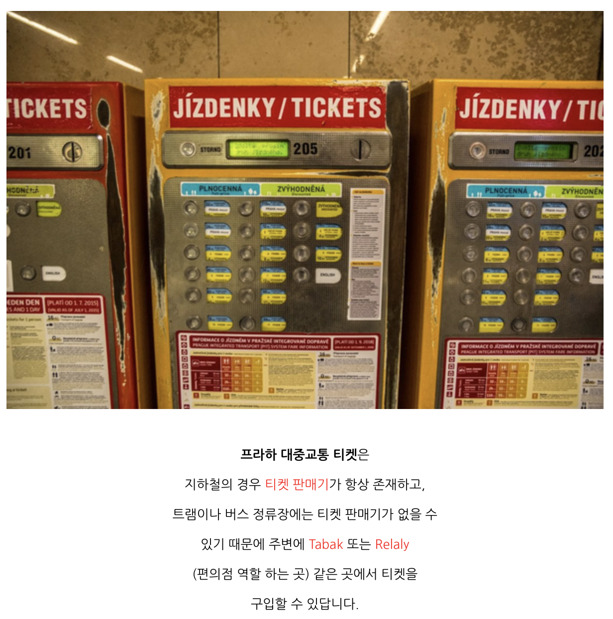 - 티켓 자동판매기: 대부분의 지하철역, 트램 정류장, 버스 정류장에 티켓 자동판매기가 있습니다.