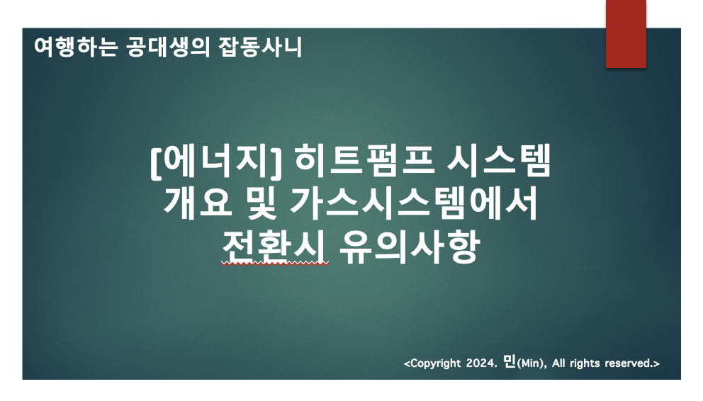 여러분 안녕하세요 민(Min) 입니다. 이번포스팅에서는 에너지 분야에서 히트펌프 시스템에 대한 이야기를 해보고자 합니다.