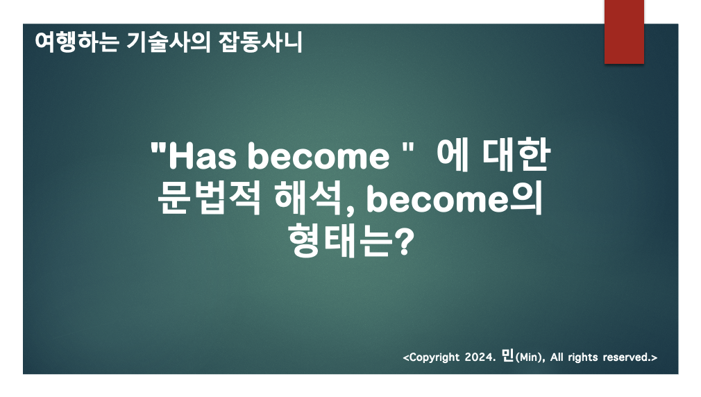 여러분 안녕하세요 민(Min) 입니다. 영어에서 "has become", 참 많이 사용하는 단어이자 어구 입니다.