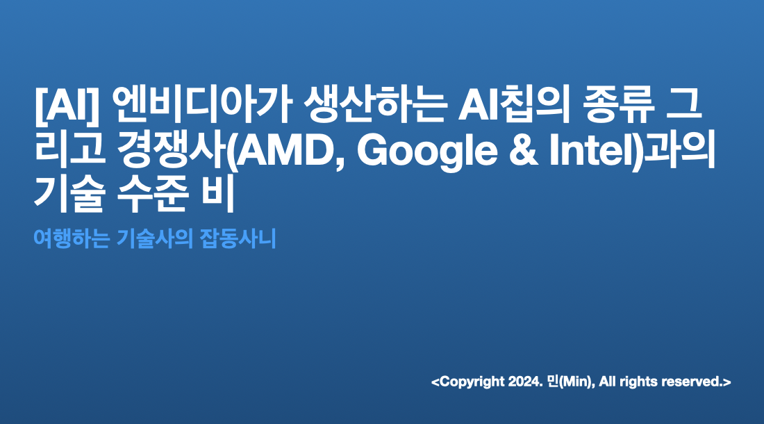 여러분 안녕하세요 민(Min) 입니다. 최근 AI 기술은 전세계를 화끈하게 달구고 있고, 주식 사장에서도 지대한 영향을 미칩니다. 대장의 역할을 하는 엔비디아!에 대한 이야기를 지금부터 시작합니다.