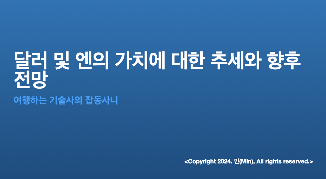 안녕하세요 여러분 민(Min) 입니다. 이번 포스팅에서는 [달러 및 엔의 가치에 대한 추세와 향후 전망]에 대하여 작성해보고자 합니다.