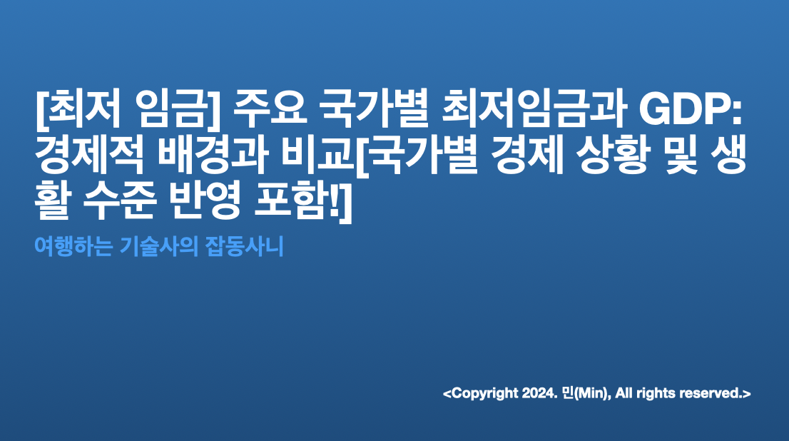 안녕하세요 여러분 민(Min) 입니다. 이번 포스팅에서는 [주요 국가별 최저임금과 GDP: 경제적 배경과 비교]에 대한 주제로 여러분들과 공유하고자 합니다.