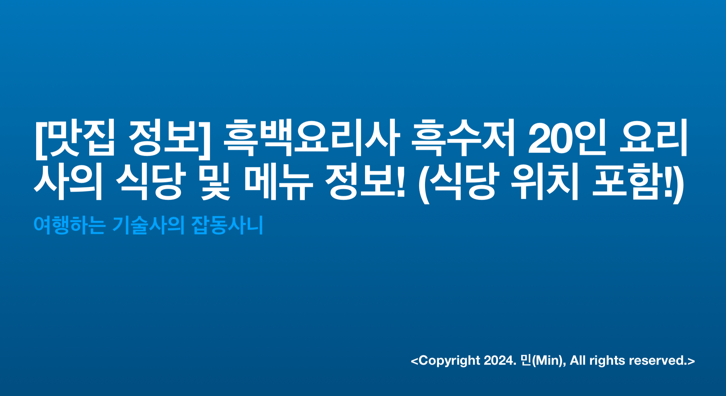 안녕하세요 여러분 민(Min) 입니다. 이번 포스팅에서는 최근 넷플릭스에서 핫한 흑백요리사에 대한 이야기를 해보고자 합니다.