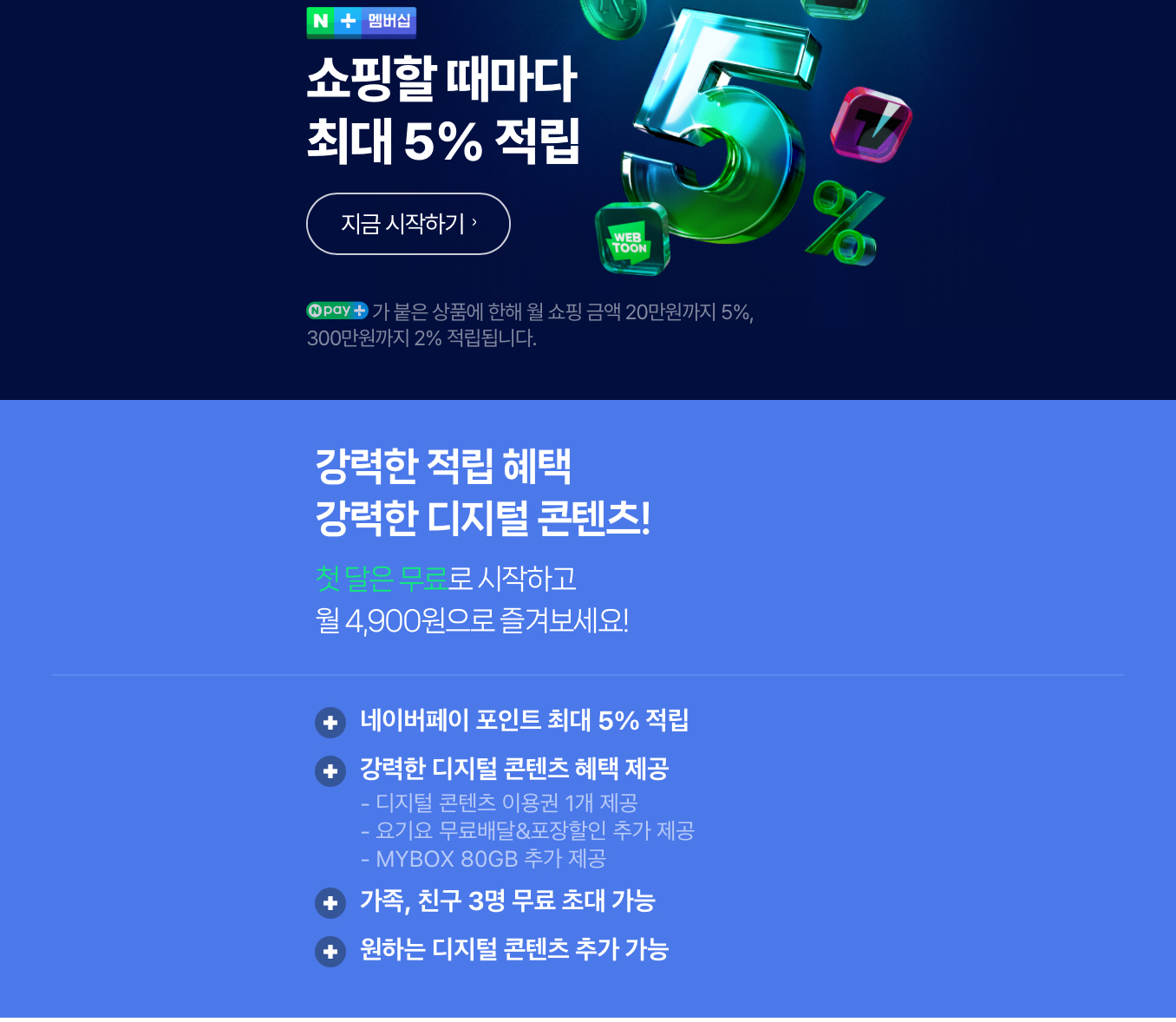 [네이버플러스 멤버십] 쇼핑 최대 5% 적립부터 디지털 콘텐츠 이용권까지!