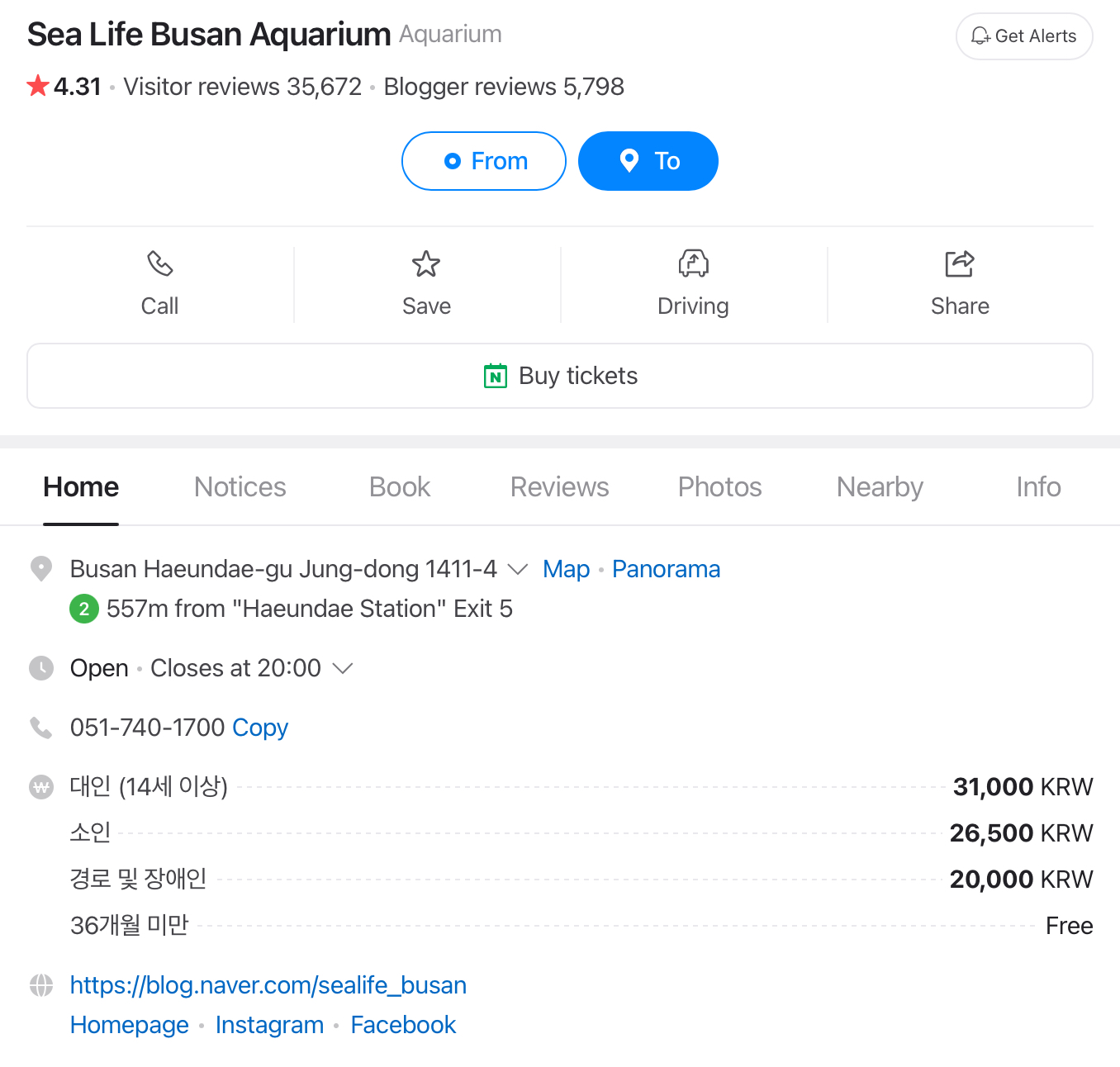 • 16:00 – 부산 SEA LIFE 아쿠아리움