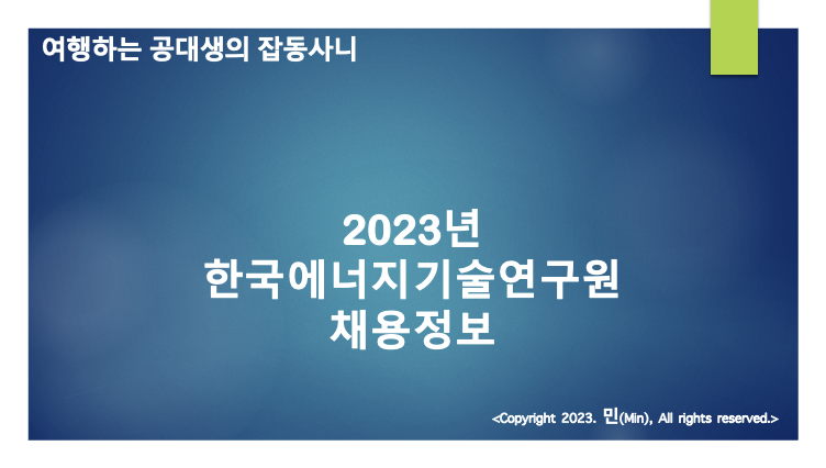 안녕하세요 여러분 민(Min) 입니다. 이번 포스팅에서는 한국에너지기술연구원 채용 정보에 대하여 말씀을 드리고자 합니다.