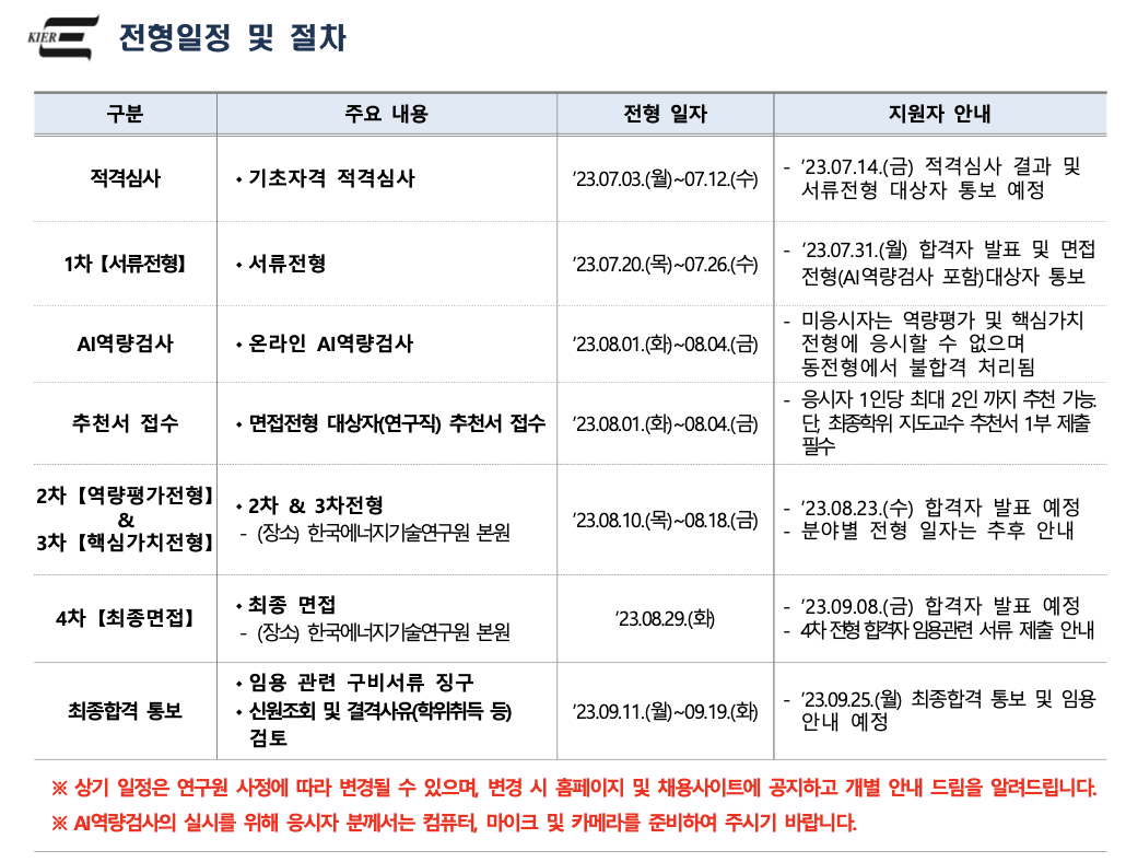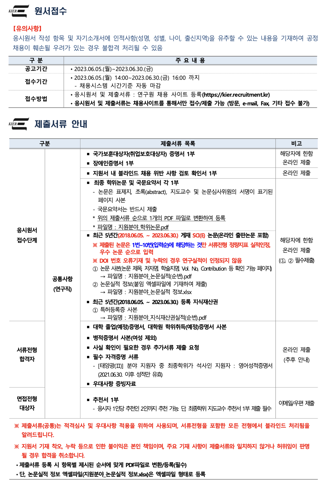 특이사항은, 박사급 채용에 있어서 SCI 논문 실적 제출이 필요하므로 해당 급의 논문 작성이 무엇보다 중요해 보입니다. 향후 해당 채용을 준비하시는 분들은 참고하여 대비하시기 바랍니다.