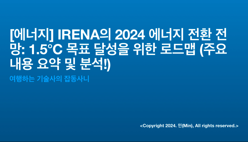 기후 변화 대응과 지속 가능한 미래를 위한 에너지 전환이 점차 중요해지고 있습니다. 국제재생에너지기구(IRENA)가 최근 발표한 “2024 세계 에너지 전환 전망 보고서(World Energy Transitions Outlook 2024)”는 1.5°C 목표를 달성하기 위한 구체적인 로드맵을 제시하며, 글로벌 에너지 시스템의 전환 가속화를 강조합니다. 이 블로그에서는 보고서의 주요 내용을 정리하고, 에너지 전환을 위한 주요 도전과 기회를 살펴보겠습니다.