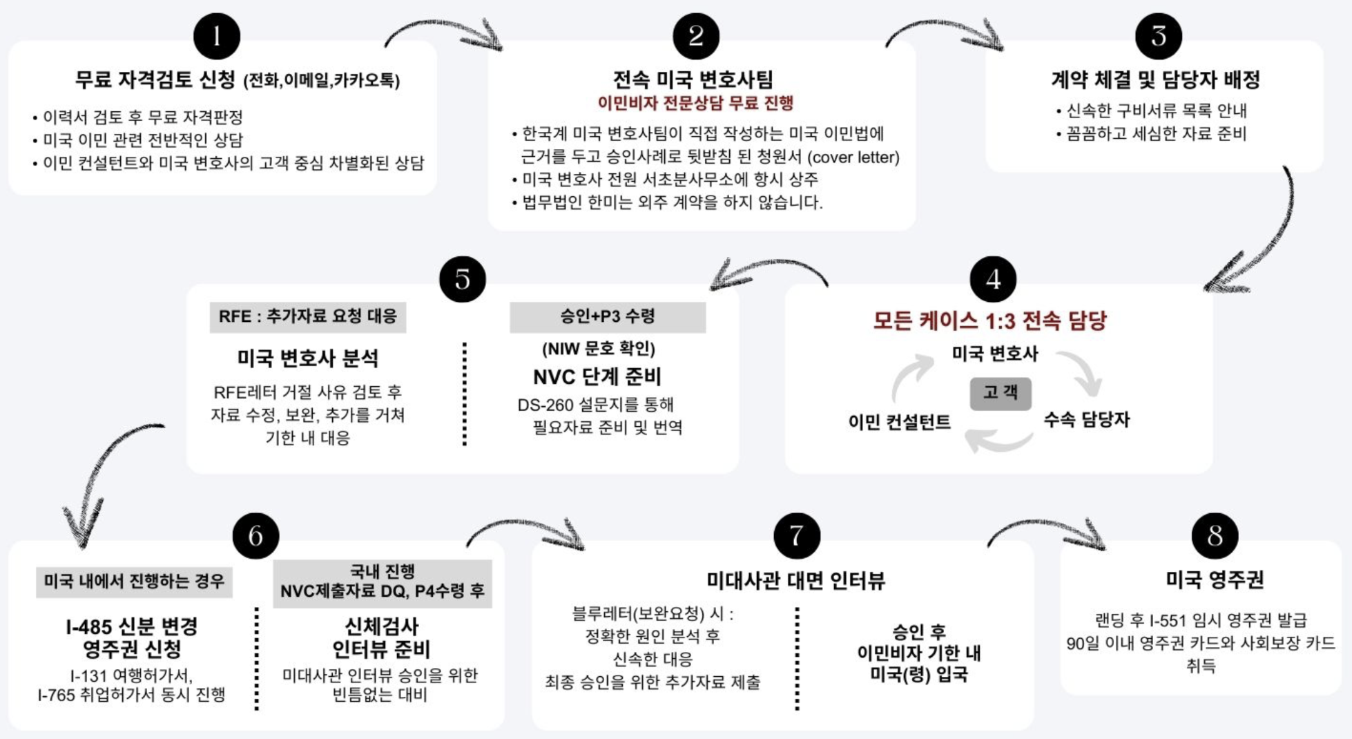 - 비자 발급 (승인 시): 비자 승인 시 영주권 카드를 발급받고 미국에 입국할 수 있습니다.