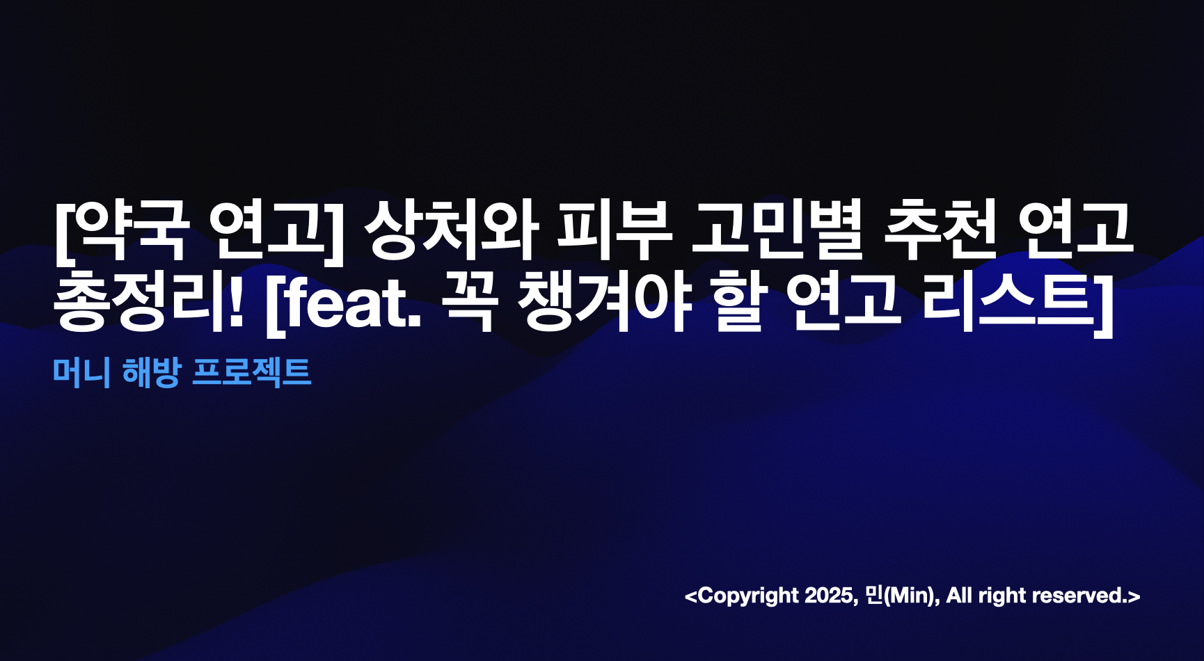 안녕하세요 여러분 민(Min) 입니다. 오늘은 다양한 피부 고민과 상처에 맞는 연고를 소개해드리려고 합니다. 피부에 생기는 상처나 트러블은 무조건 방치하기보다는 적절한 제품을 사용해 관리하는 것이 중요합니다. 상처의 종류에 따라 사용하는 연고가 다르기 때문에, 이번 글을 통해 맞춤형 솔루션을 알려드릴게요.