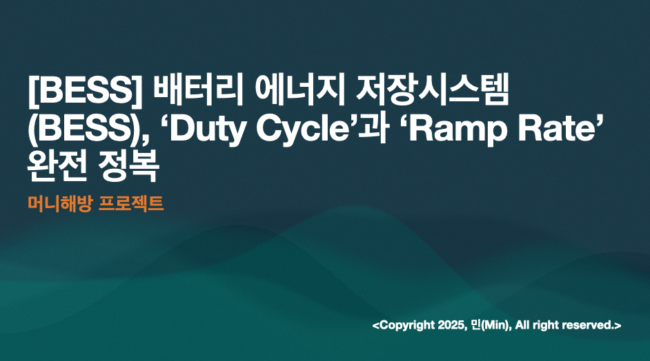 이 글에서는 BESS의 핵심 개념인 Duty Cycle과 Ramp Rate를 이해하기 쉽도록 정리하고, 실무 예시를 통해 어떻게 적용되는지 설명합니다.