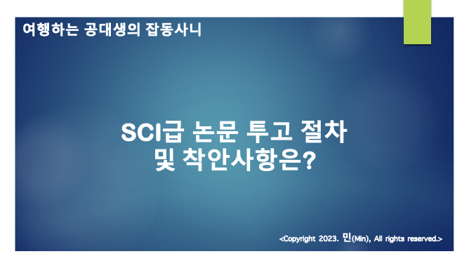 안녕하세요 민(Min) 입니다. 이번 포스팅에서는 SCI급 논문 투고 방법, 절차에 대하여 간략하게 살펴볼 생각입니다.