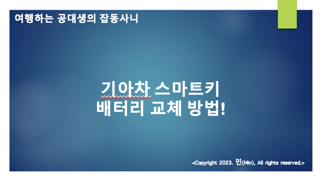 안녕하세요 민(Min) 입니다. 이번 포스팅에서는 기아차 스마트키 배터리 교체에 대하여 이야기 해볼까 합니다.