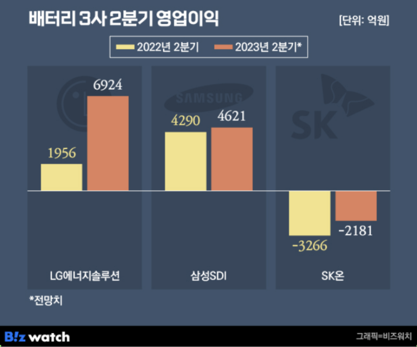 위와 같이 3사의 영업이익 개선 및 SK온의 적자폭의 감소가 예상되고 있습니다.