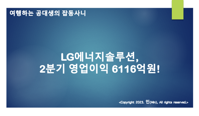 안녕하세요 민(Min)입니다. 이번포스팅에서는 LG에너지솔루션 기업에 대한 이야기를 잠시 나눠보고자 합니다.