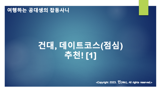 안녕하세요 민(Min)입니다. 이번 포스팅에서는 건대 맛집 리스트 몇군데를 여러분과 나누고자 합니다.