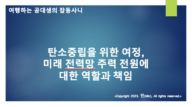 전 세계가 탄소중립을 많이 외치는 현재 상황에서, 원자력-신재생, 미래 전력망 주력전원으로서의 역할과 책임에 대한 토론 내용에 대하여 여러분들과 공유하고, 제 생각까지 함께 나눠 보고자 합니다.