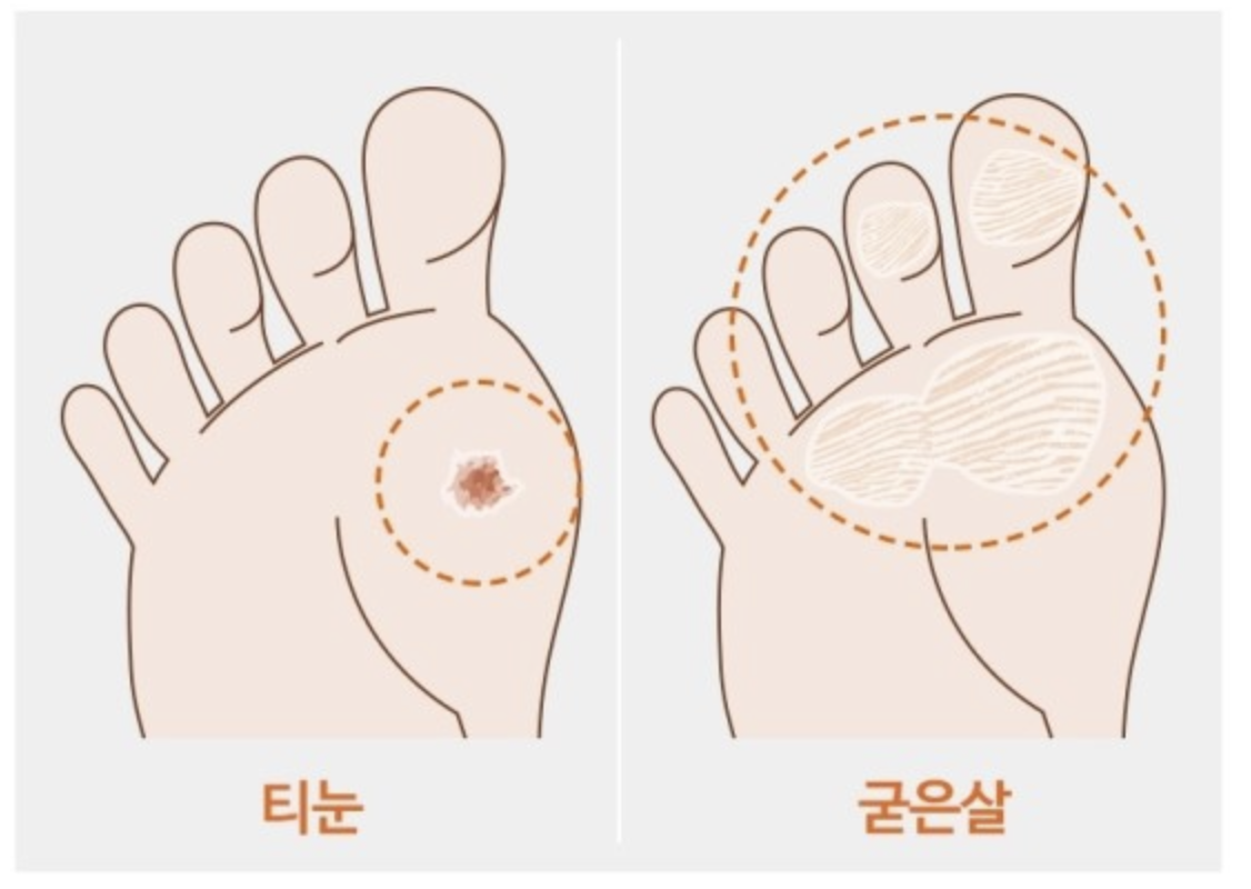 제가 겪어보니 티눈과 굳은살의 차이를 알기가 매우 어렵더라고요.