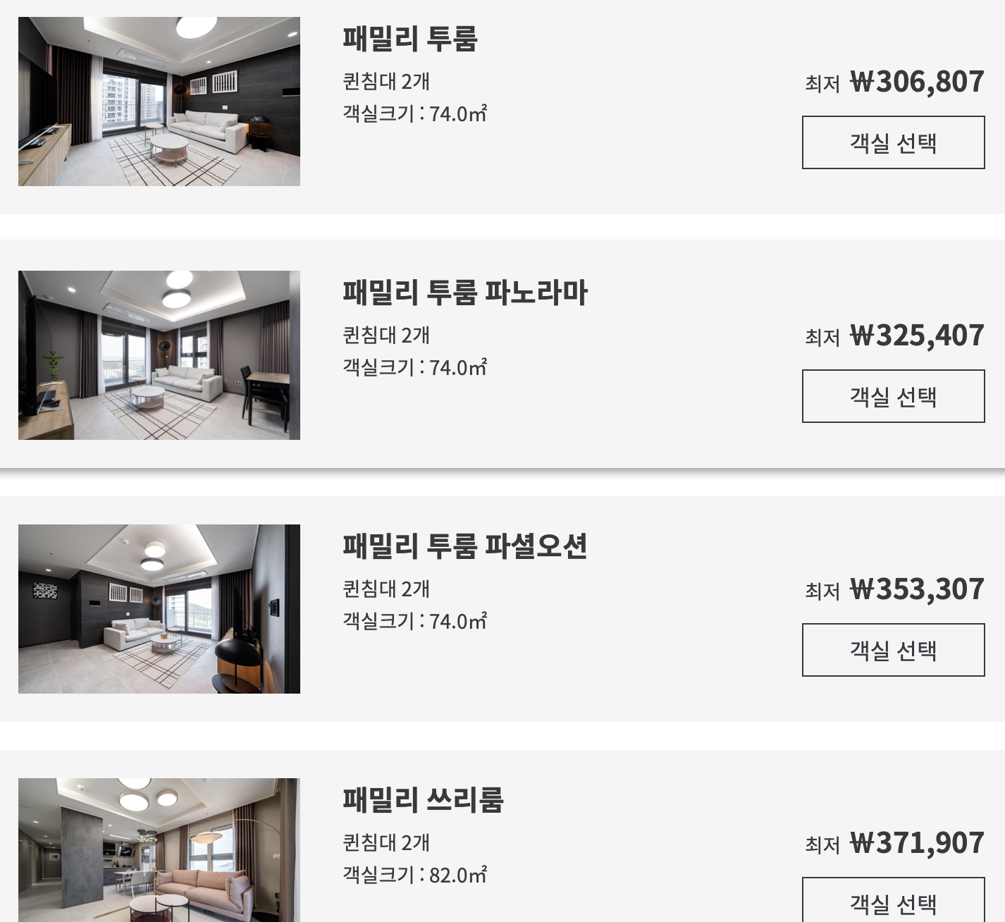 패밀리 트윈룸 기준 30만원 / 패밀리 쓰리룸은 약 40만원 선을 예상하시면 될 것 같습니다.