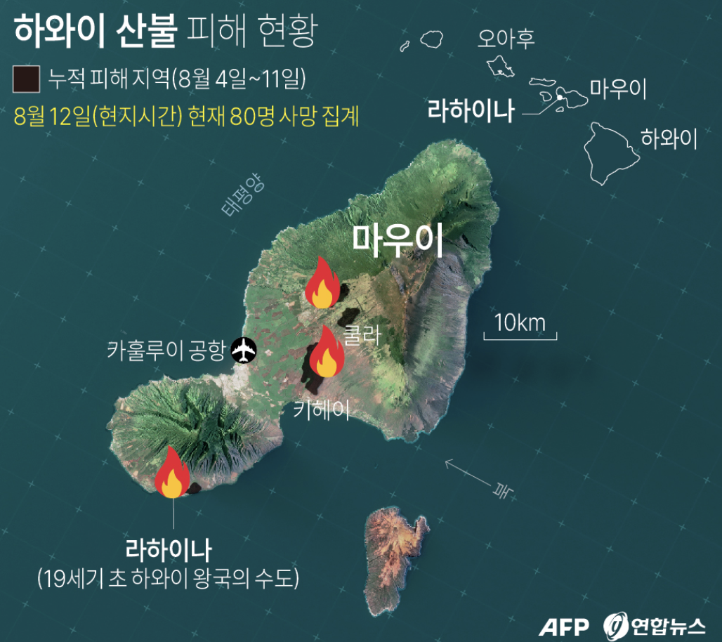 이번 산불은 마우이 섬에 발생하여 큰 규모의 피해를 주민들에게 입히고 있습니다만, 현 시점까지도 잔불로 인하여 위험한 상황입니다.