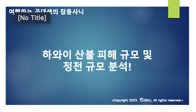 안녕하세요 여러분 민(Min) 입니다. 이번 포스팅에서는 하와이 산불 피해 규모 그리고 정전 규모에 대한 이야기를 해보고자 합니다.