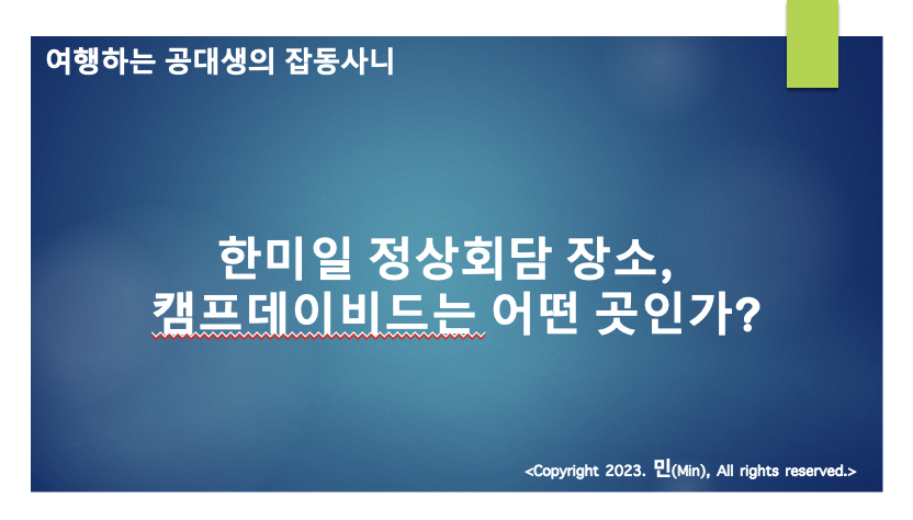 안녕하세요 민(Min) 입니다. 이번 포스팅에서는 한미일 정상회담이 이루어진 캠프데이비드에 대한 정보에 대하여 이야기 해보고자 합니다.